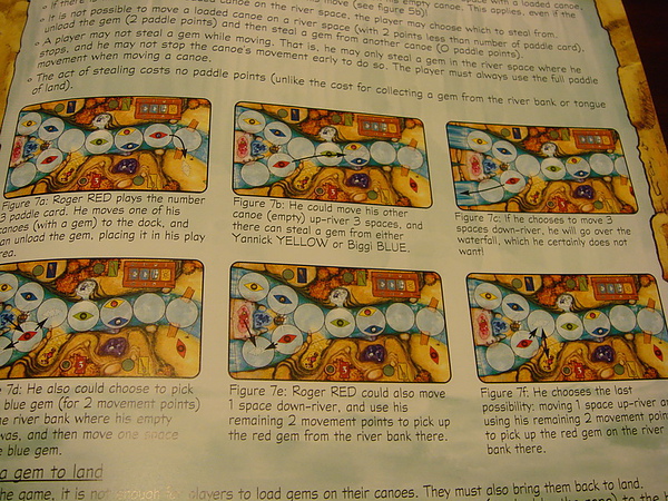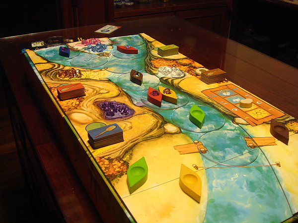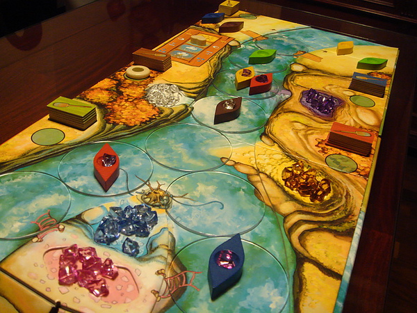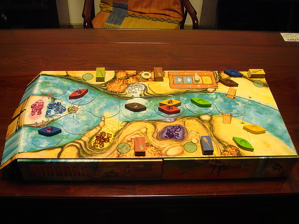 遊戲板中的河道和各色存放寶石的地方都做有凹槽 方便擺放寶石和水流圓盤通過