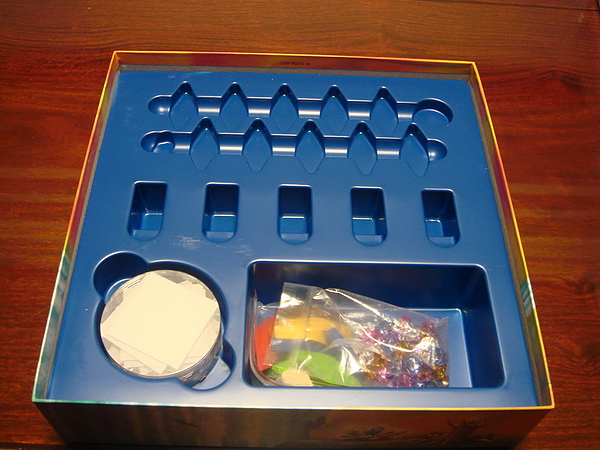 我覺得整個遊戲的敗筆就在底層的這個藍色塑膠收納盒 它跟整個遊戲外盒的配色完全不搭襯