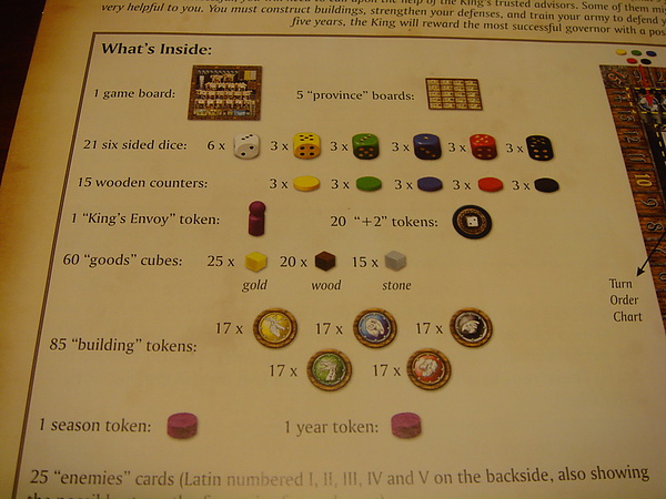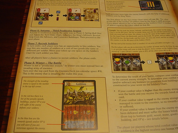 玩家扮演不同家族的領主協助國王發展王國和抵禦外敵的入侵 遊戲總共進行五年四十個階段 遊戲結束計算得分